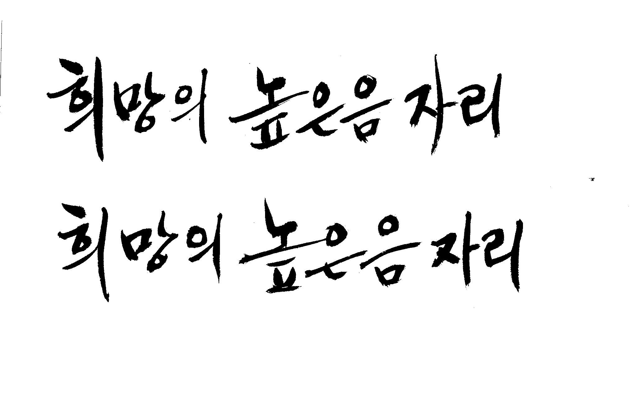 저도 캘리좀부탁이요 ^^;; 김철호 일반 0 6330 2009.01.14 10:59 > > > > > 희망의 높은음자리 > > > > 감사합니다 ^^ 꼭부탁드려욧 ㅎㅎㅎ > > > > 좋은 글이라서 신경썼는데 > 만족할 만큼 않나왔네요.. > 유용하게 쓰시길... >